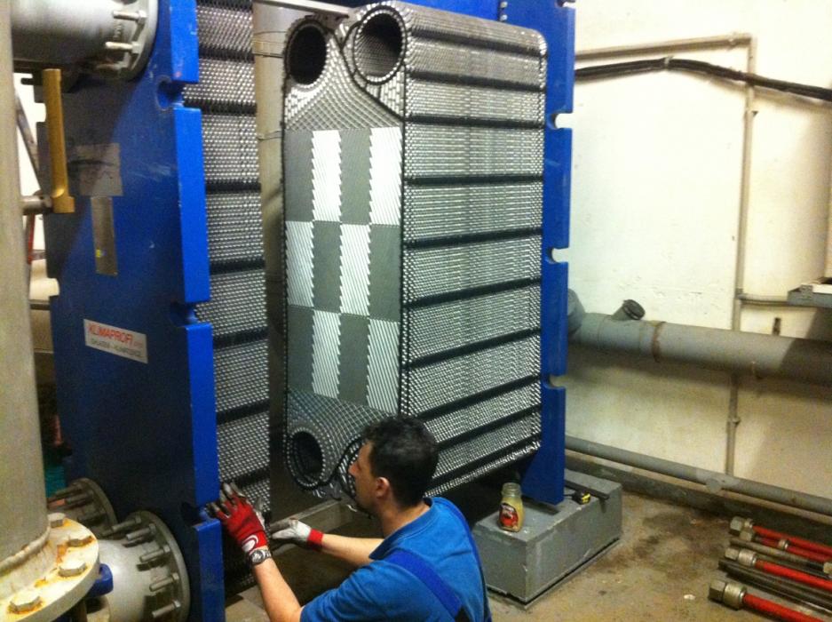 Instalace nových desek. Výměník Alfa Laval, typ M15.