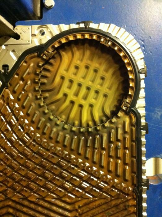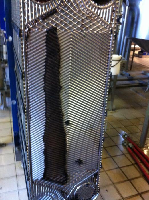 Korozní nečistoty z potrubí snadno infikují nerezové desky ve výměníku.