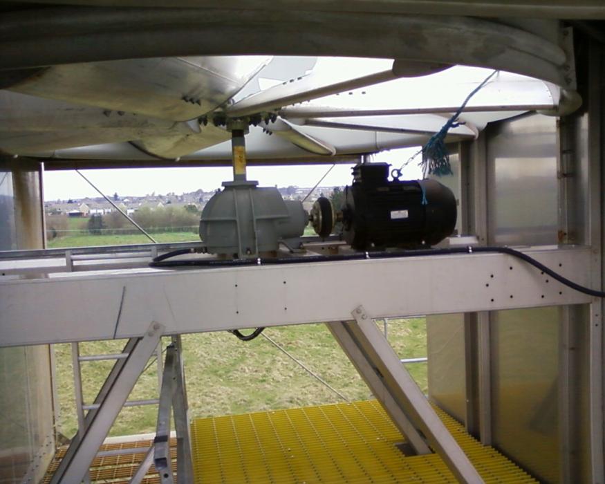 Pohled pod ventilátor otevřené chladicí věže typu NC.